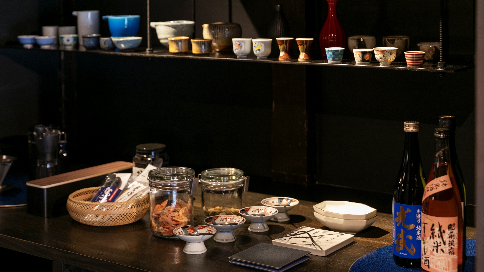 なんと1階には日本酒バーが!おつまみや鹿島・嬉野の日本酒を楽しめるのが嬉しいですね♪